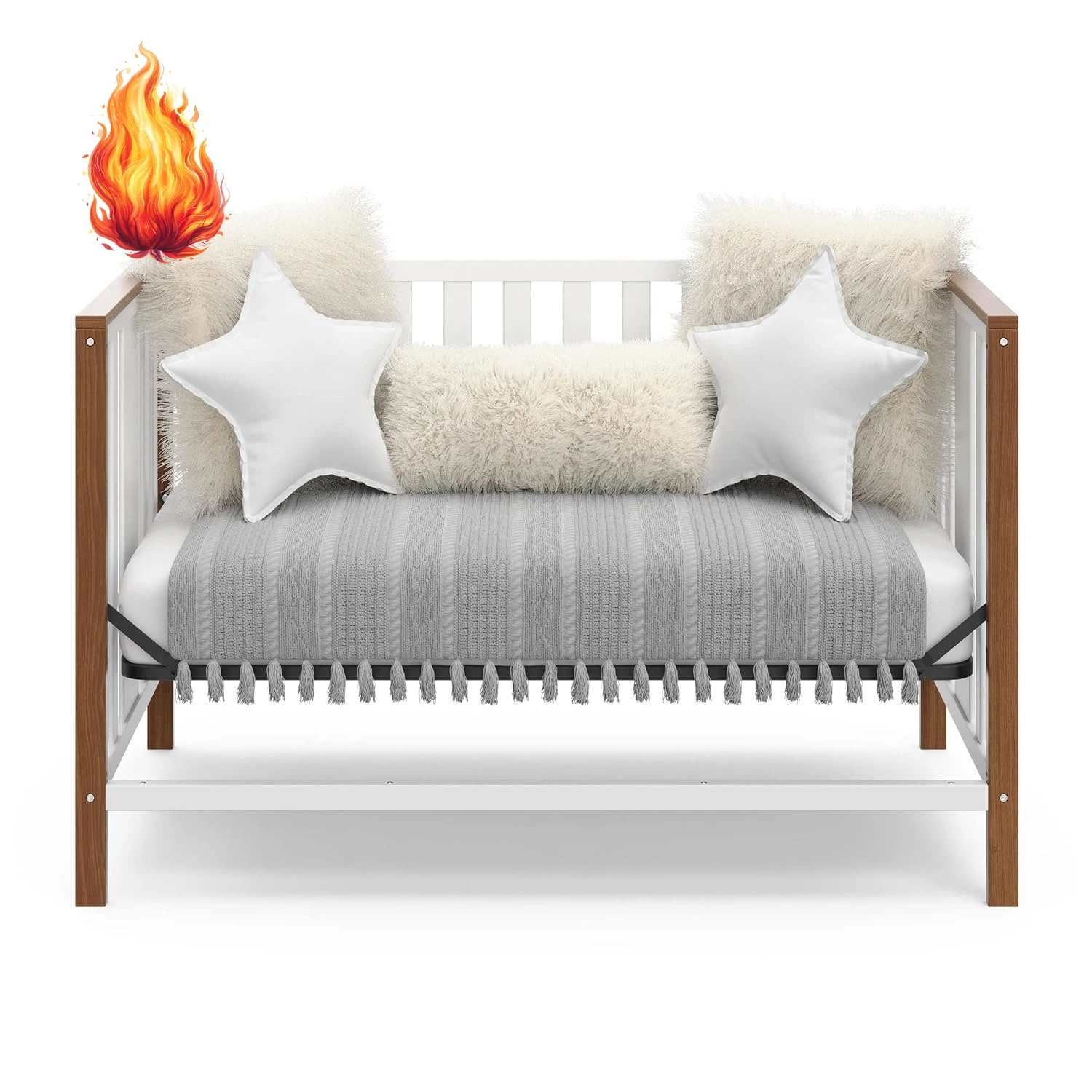 GREENGUARD Gold certification ensures that the crib meets strict safety and low chemical emission standards, providing peace of mind for parents. The modern design with subtle vintage driftwood details complements contemporary, farmhouse, and minimalist nursery décor.