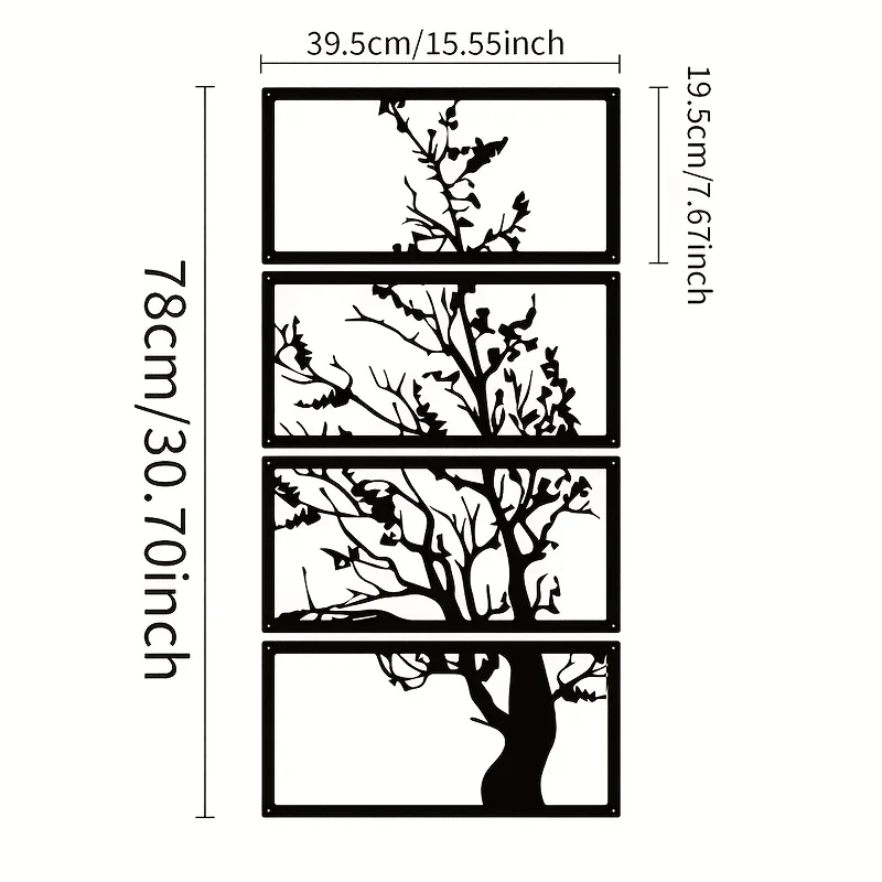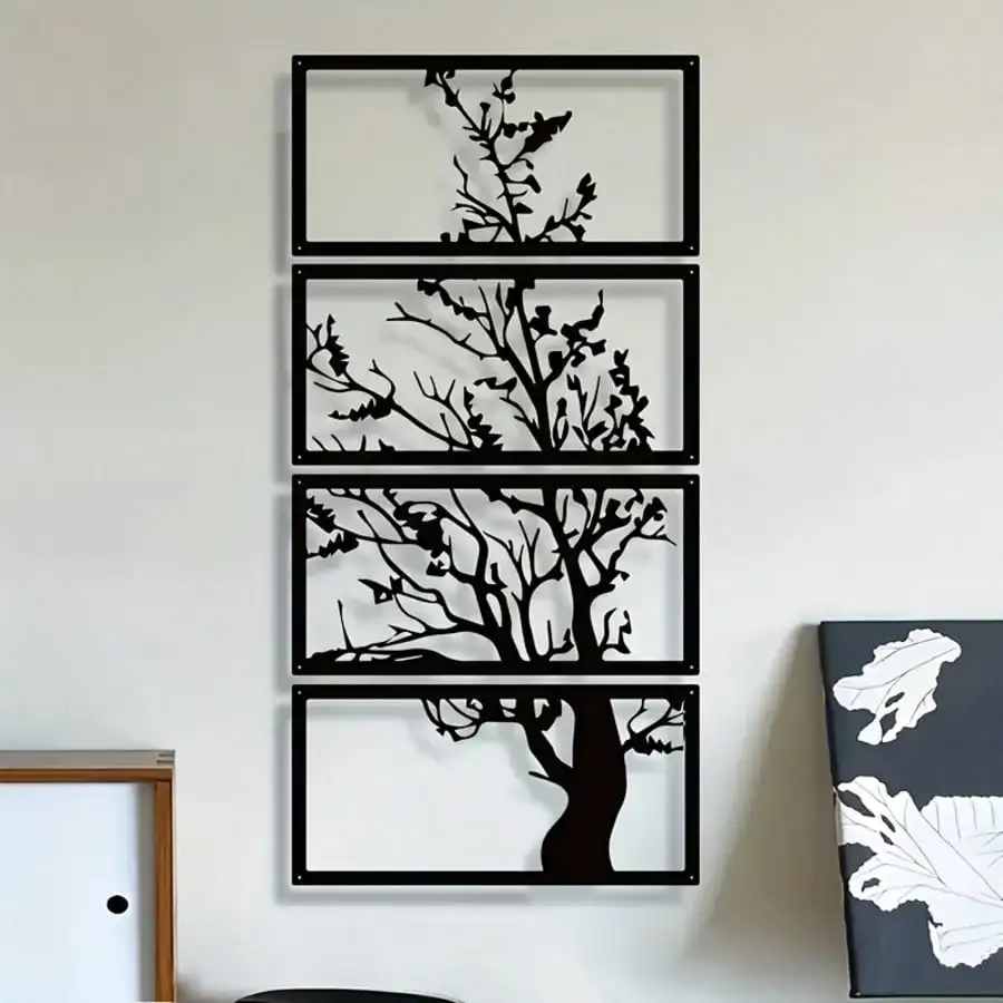 Enhance your home with the striking elegance of the 4pcs Black Metal Tree Wall Art. Designed in an Art Deco-inspired silhouette style, each panel showcases a beautifully crafted Tree of Life motif, adding depth and symbolism to any room. The bold black metal finish offers a modern, timeless look that pairs effortlessly with both minimalist and contemporary interiors. Perfect for living rooms, bedrooms, hallways, or office spaces, this set creates a stunning focal point whether hung together as a unified display or arranged separately throughout your home. Crafted from durable metal, the pieces are lightweight, easy to mount, and built to last. The openwork design allows your wall color to show through, creating a dynamic contrast and a visually captivating effect. Add sophistication, meaning, and artistic beauty to your interior décor with the 4pcs Black Metal Tree Wall Art, a versatile set that elevates any space with its refined and nature-inspired charm.