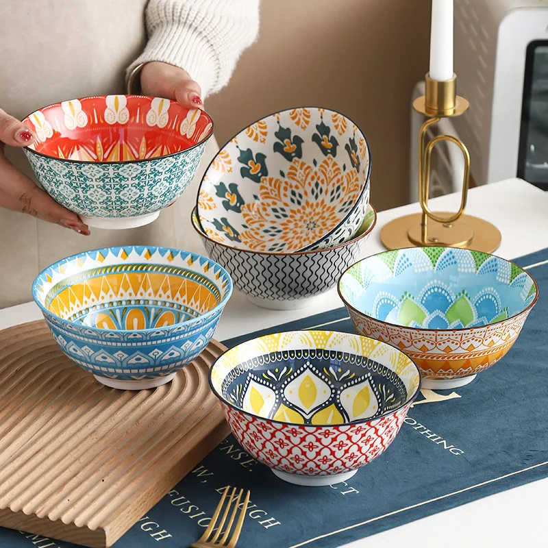 Add artistic charm to your table with this 6.25-inch Bohemian Ceramic Bowl, designed for serving rice, noodles, soups, salads, and everyday meals in style. Its unique Boho-inspired patterns create a vibrant, handcrafted look that instantly elevates any dining setting. Made from high-quality ceramic, the bowl offers excellent durability, heat resistance, and long-lasting color retention. The smooth glazed surface makes it easy to clean and resistant to stains or odors. Its versatile size is perfect for both individual servings and small shared dishes. Whether used at home or in a restaurant, it adds a warm, retro touch to modern and traditional table settings. The bowl’s comfortable depth prevents spills, making it practical for liquid or solid foods. This design blends functionality with artistic flair, ideal for daily use or special occasions. Each piece is crafted to bring personality to your kitchen while maintaining practicality. The 2025 design update adds refined detailing and improved durability. Perfect for gifting, entertaining, or upgrading your dinnerware collection.