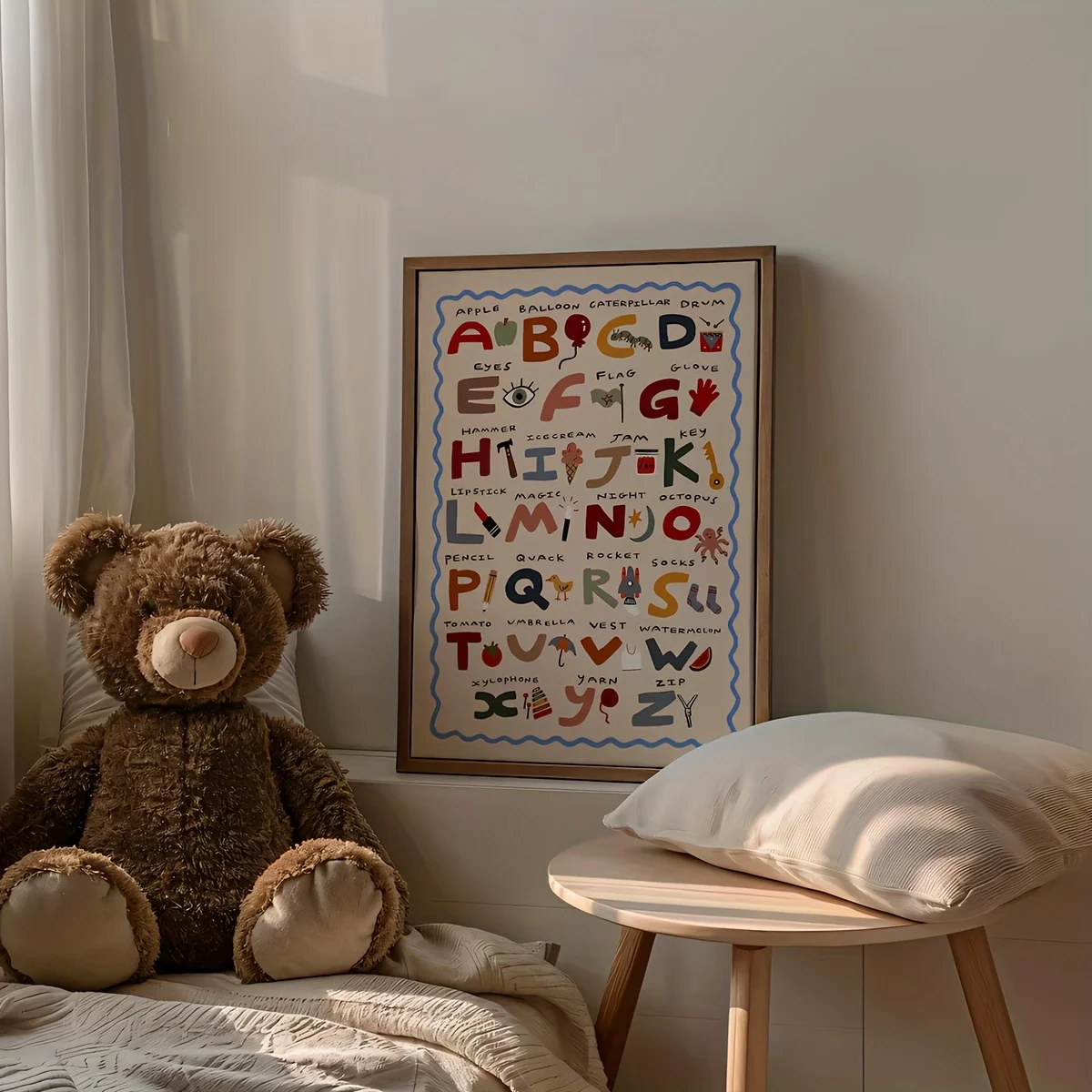 Make learning fun and decorative with this Alphabet Canvas Wall Art, featuring playful cartoon letters designed to engage and educate. Perfect for nurseries, classrooms, or kids’ bedrooms, this poster combines style and learning in one charming piece.