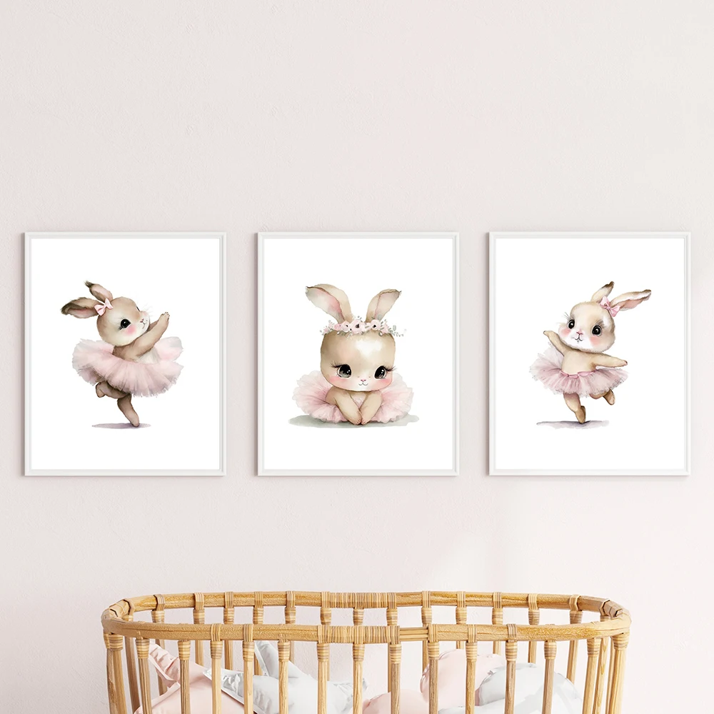 Create a sweet and whimsical space with this 3-Piece Cute Ballerina Bunny Canvas Poster Set, designed to charm and inspire. Featuring adorable bunny rabbits dressed as ballerinas, these prints bring a playful yet elegant touch to nurseries, girls’ rooms, and playrooms.