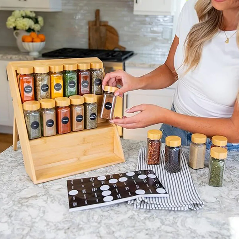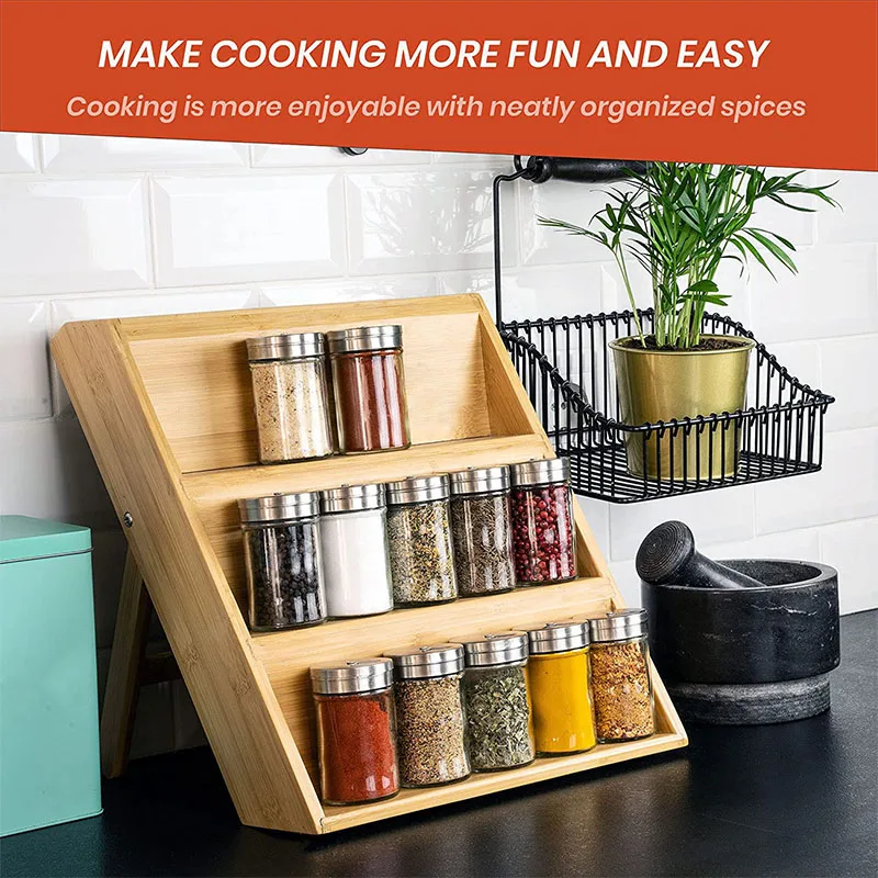 Upgrade your kitchen organization with this Foldable Bamboo Spice Rack, combining practicality, eco-friendly materials, and timeless design for a clutter-free cooking space.