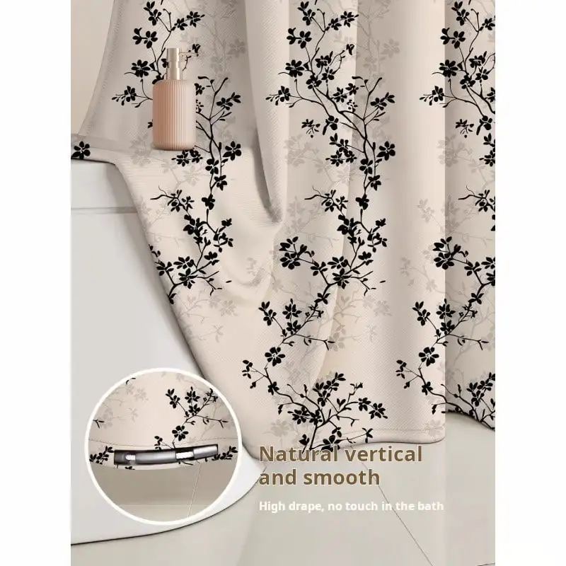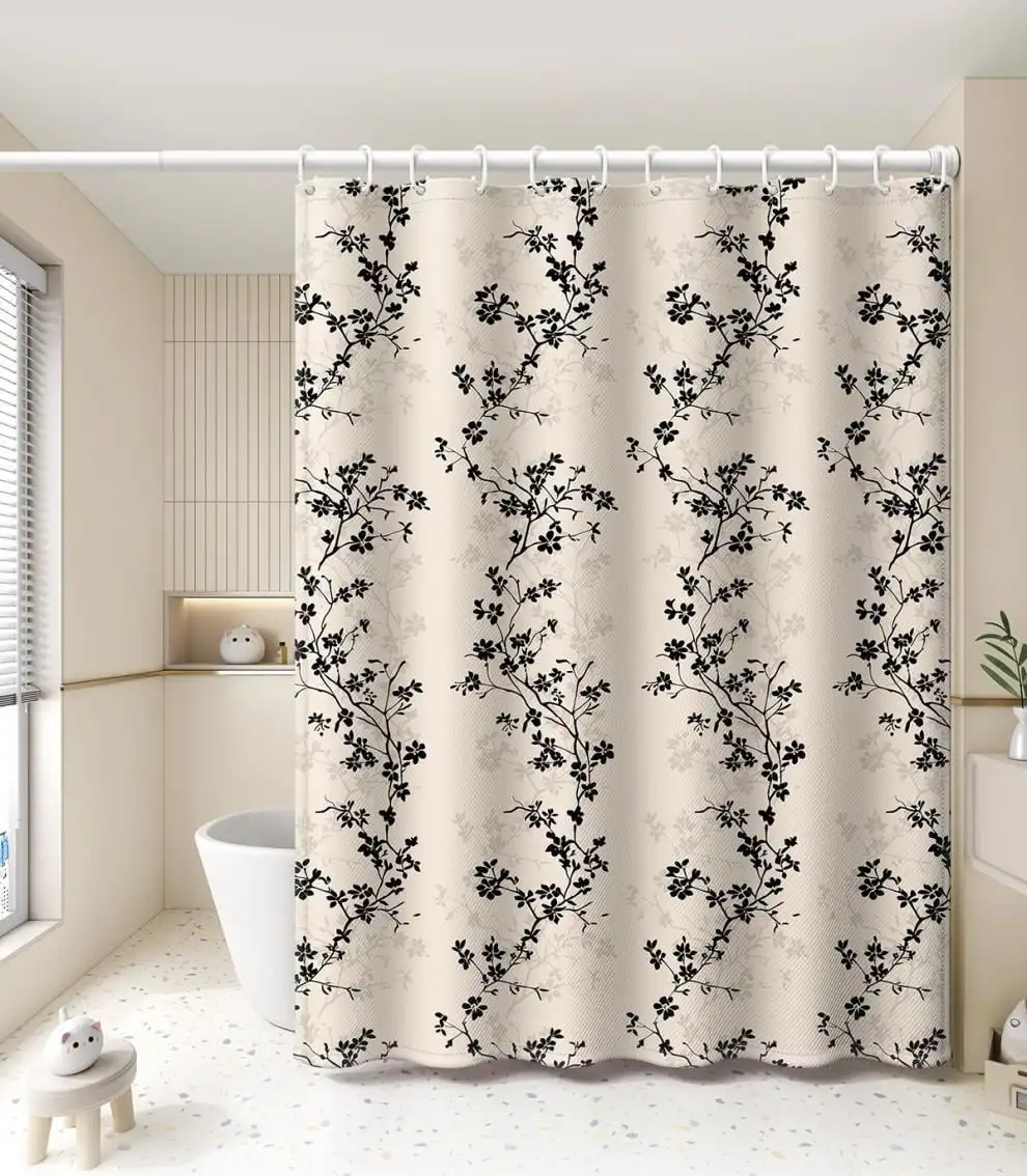 Elevate your bathroom with this Elegant Black & White Floral Shower Curtain, featuring a classic blossom design that exudes sophistication and timeless style. Crafted from high-quality waterproof fabric, it protects your bathroom from splashes while maintaining a luxurious look. The monochrome floral pattern complements modern, minimalist, and classic bathroom décor styles, adding a chic accent to any space. Perfectly sized for standard showers or bathtubs, this curtain is easy to install with included hooks or rings. The durable fabric is lightweight yet sturdy, draping beautifully for a polished appearance. Machine washable and quick-drying, it offers convenient maintenance while retaining its vibrant design. Ideal for home bathrooms, guest bathrooms, or even boutique hotel settings, it combines functionality with aesthetic appeal. The elegant floral motifs create a calm and refreshing atmosphere, enhancing your daily routine. Its waterproof construction ensures practicality, while the high-quality print adds a designer touch to your space. Pair it with matching bath mats, towels, or accessories for a cohesive look. This shower curtain is perfect for anyone seeking a sophisticated, timeless, and stylish bathroom upgrade. Make your bathroom a refined and elegant retreat with this black and white floral shower curtain, blending classic design with modern convenience.