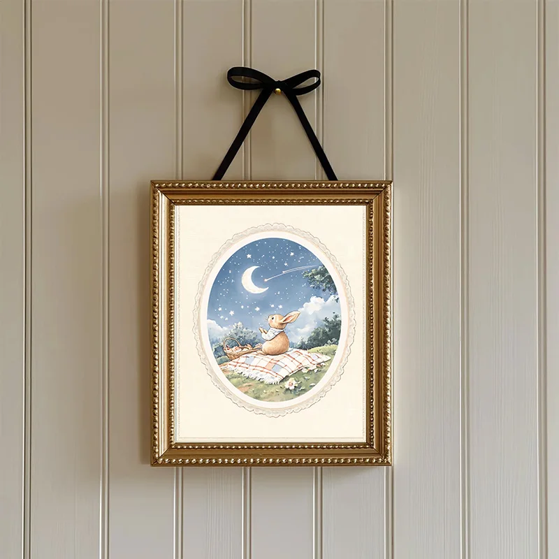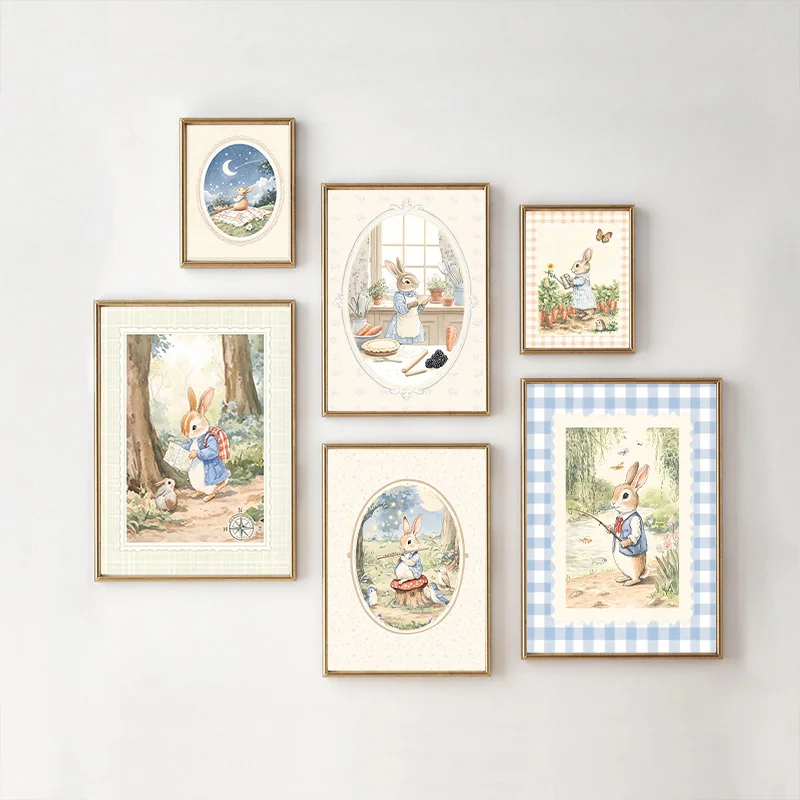 Create a calm and charming atmosphere with this Vintage Boho Blue Plaid Rabbit Canvas Art, perfect for nurseries, baby rooms, or cozy bedrooms. Featuring a sweet rabbit illustration inspired by countryside fields, this artwork adds warmth and personality to any space.