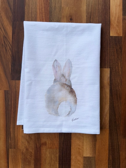 Flour sack tea towel made of 100% premium heavy weight cotton and measuring 27×27 inches with hemmed sides and original watercolor artwork.