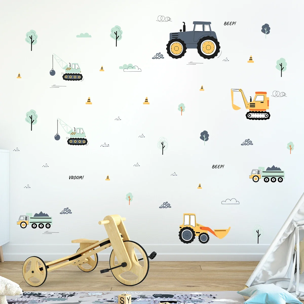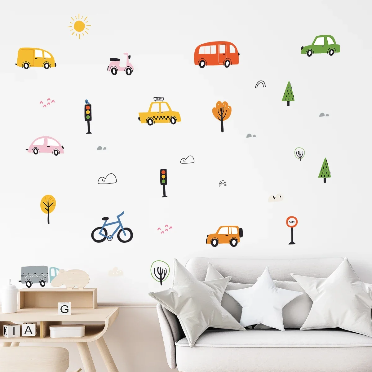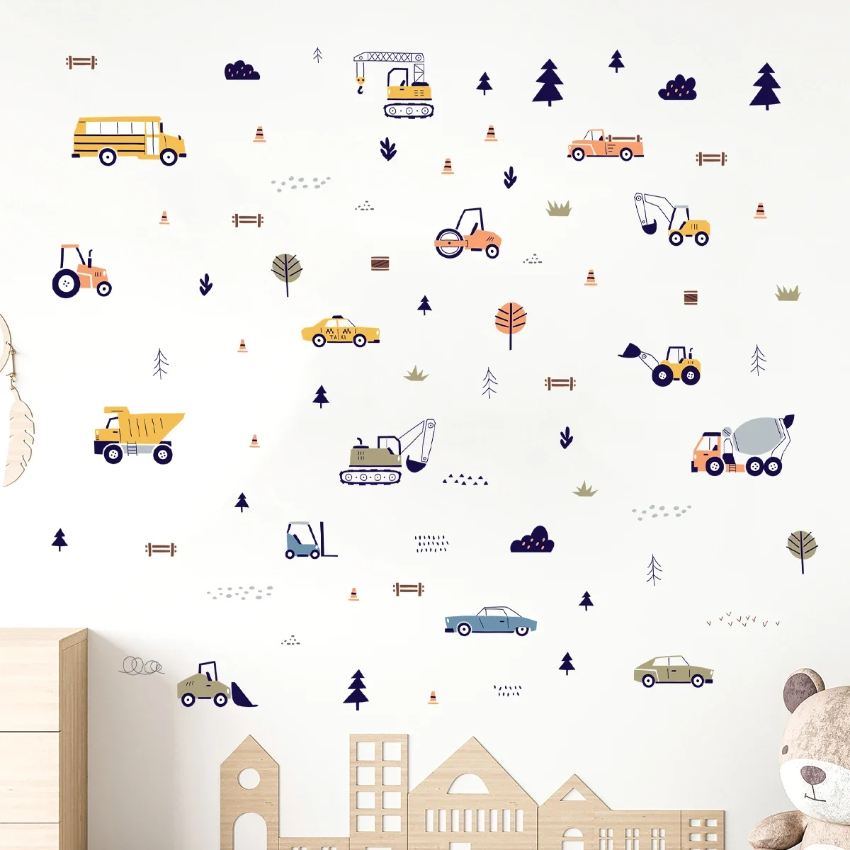 These Cartoon Truck Wall Stickers bring fun, color, and imagination into your child’s room. Designed with adorable construction trucks and cars, they instantly brighten up walls and create a playful atmosphere. Perfect for nurseries, toddler rooms, and playrooms, these decals spark creativity and delight little vehicle lovers. The peel-and-stick design makes them easy to apply, reposition, and remove without damaging your walls. They adhere smoothly to clean surfaces such as painted walls, furniture, doors, and even windows. Made from high-quality, safe, and durable materials, they maintain vibrant colors over time. These stickers are ideal for transforming a plain room into an engaging construction-themed space. Parents will love how effortlessly they can refresh a room without paint or complicated décor. The cute and animated designs make them suitable for babies, young children, and preschoolers. Their charming appearance also makes them a great gift for birthdays, baby showers, or new parents decorating a nursery. Whether used as a full wall arrangement or small accents around the room, they add personality and joy. With these Cartoon Truck Wall Stickers, decorating becomes easy, fun, and completely kid-friendly.
