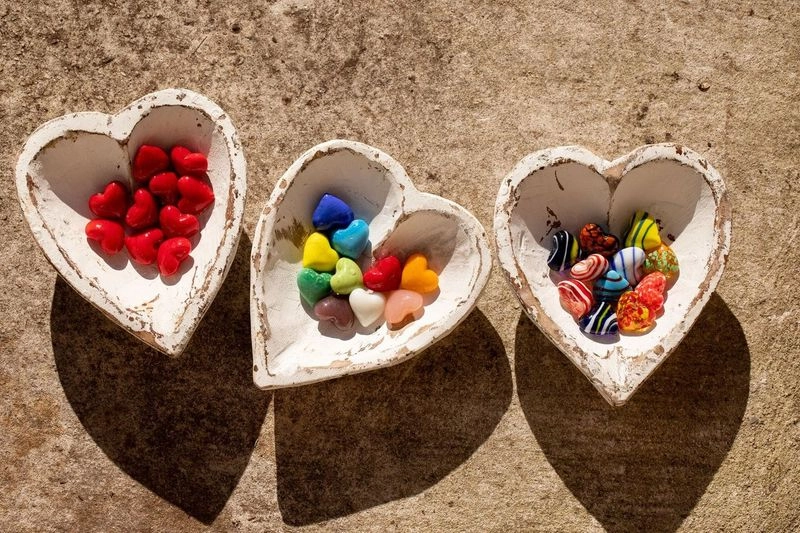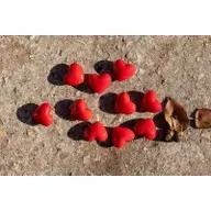 Includes 100 Glass pocket hearts in heart shaped wood bowl display. Choose from solid red, multi color or rainbow color hearts. Hearts measure 1″. Glass pocket hearts are wonderful for gifts, party favors, memorial gifts for funerals, talismans and giveaways. They are our most popular item! The colors are extraordinary and they look so inviting in our 6 1/2″ x 6″ x 2 1/2″ heart-shaped dough bowls. **Important** Dough bowl displays are hand made items, and measurements are not exact. Also, please note that the bowls are made to look rustic and may have knot holes, scratches, blade marks, minor cracks and blemishes. These are not defects, but part of the bowl making process. Bowl will come in natural wood or painted white. Dough bowls are for decorative and display use only. It has not been treated or tested for food safety. It is not rated for candle making or exposure to flame or heat. A great Valentines Day gift!