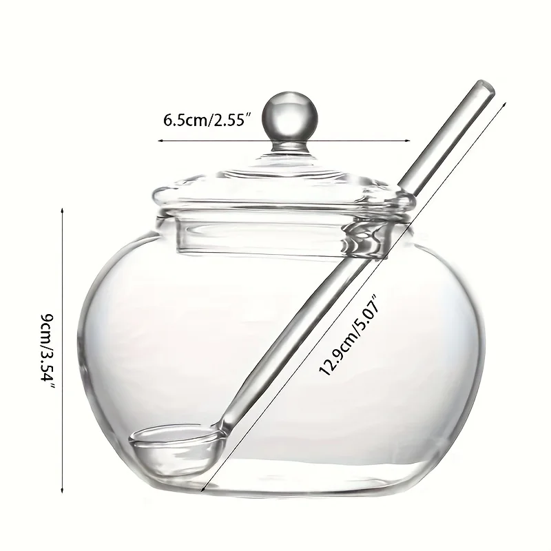 Designed for convenience, the set comes with a glass spoon or stirrer that fits perfectly inside the jar for easy scooping or drizzling. Its compact 350ML size is ideal for daily use without taking up excess counter space. The smooth glass surface is easy to clean and resistant to odors and stains.