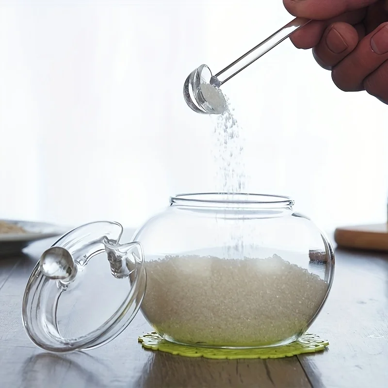 Store and serve sugar, honey, or sweeteners in style with this 350ML Transparent Glass Sugar Jar Set. Made from high-quality clear glass, this container allows you to easily see contents at a glance while adding a clean, modern touch to your kitchen or dining table. The jar includes a matching lid to help protect contents from moisture and keep them fresh.