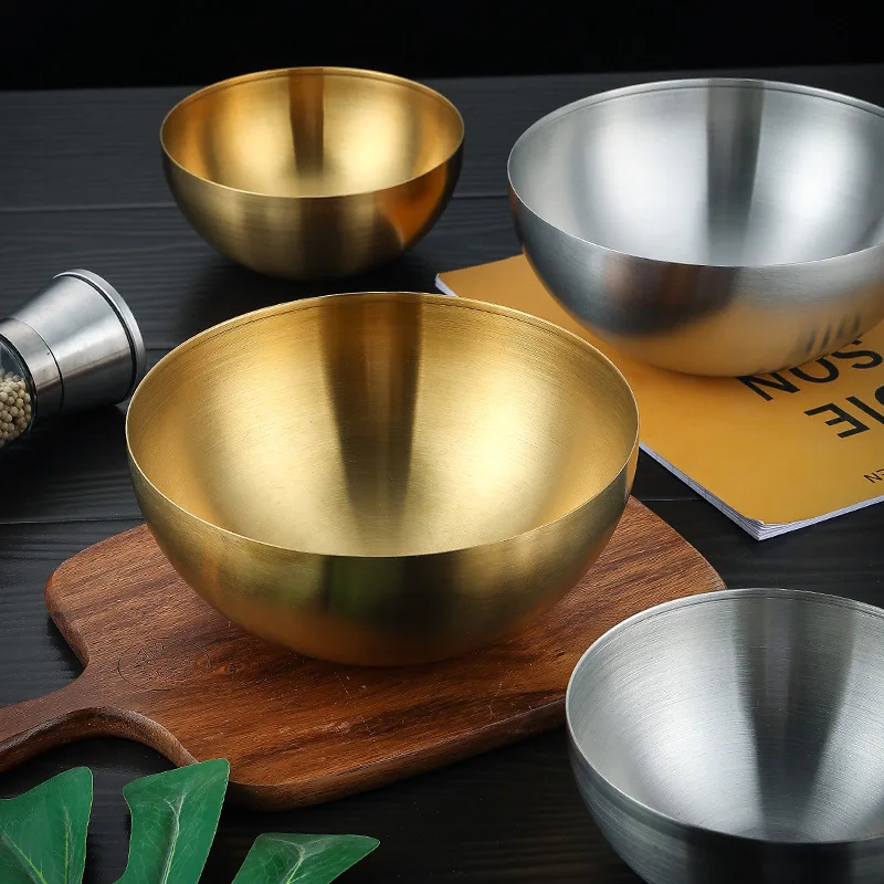The Gold & Silver Stainless Steel Noodle & Salad Bowl is a versatile and elegant addition to any kitchen or dining table. Made from high-quality stainless steel, it offers durability, corrosion resistance, and long-lasting shine. Its stylish gold and silver finish adds a luxurious touch, making it perfect for serving noodles, rice, salads, or other dishes. The bowl is lightweight yet sturdy, suitable for everyday use or special occasions. Ideal for home kitchens, restaurants, cafés, and buffets, it enhances both presentation and functionality. The smooth interior makes it easy to clean and maintain, while the polished exterior complements modern and contemporary table settings. Its wide and deep design accommodates a variety of foods, from fresh salads to lamian noodles or pasta dishes. Perfect for food prep, mixing, or serving, it is a multipurpose kitchen essential. The sleek metallic finish resists stains and odors, ensuring hygienic use. Its aesthetic appeal also makes it suitable as a decorative serving bowl for events and gatherings. The Gold & Silver Stainless Steel Noodle & Salad Bowl combines practicality, elegance, and versatility for all your cooking and serving needs.