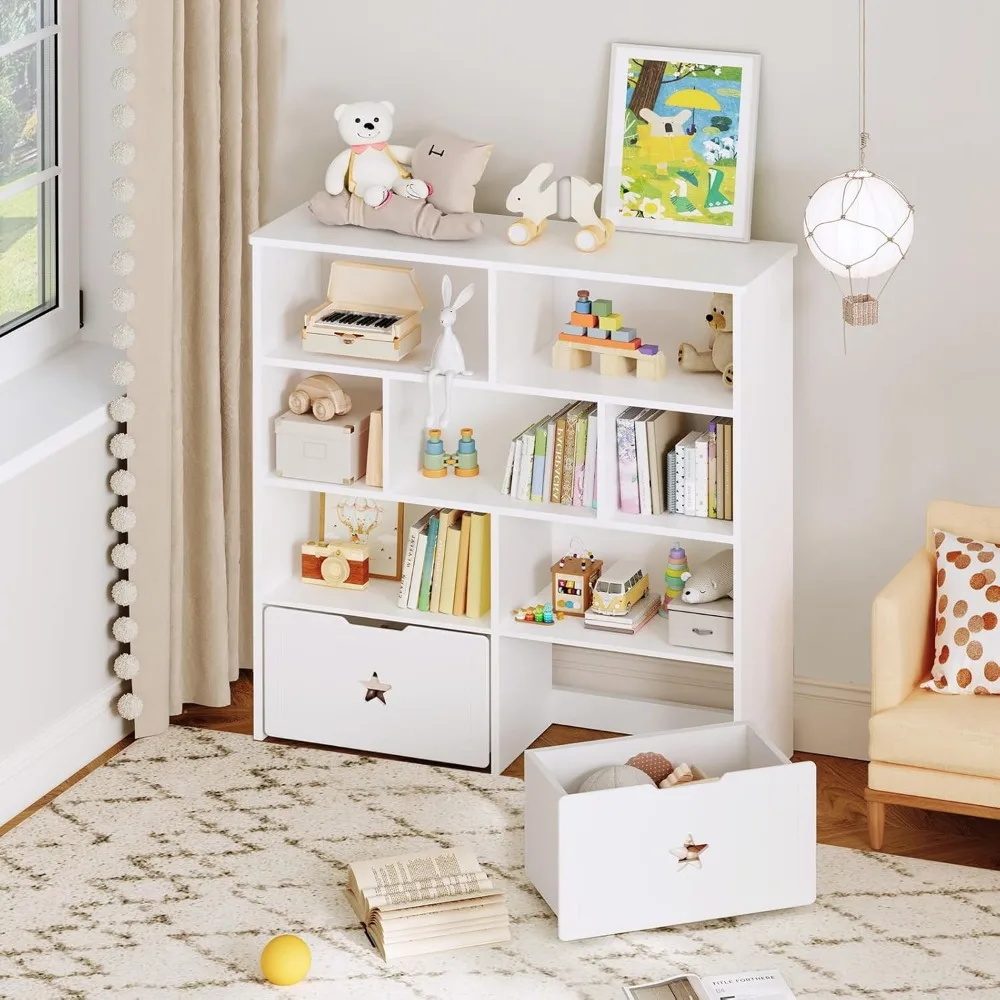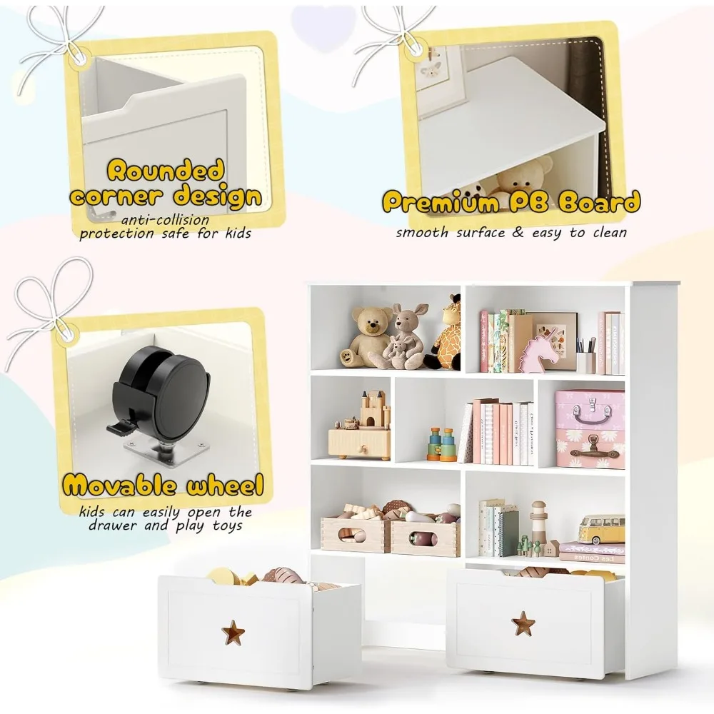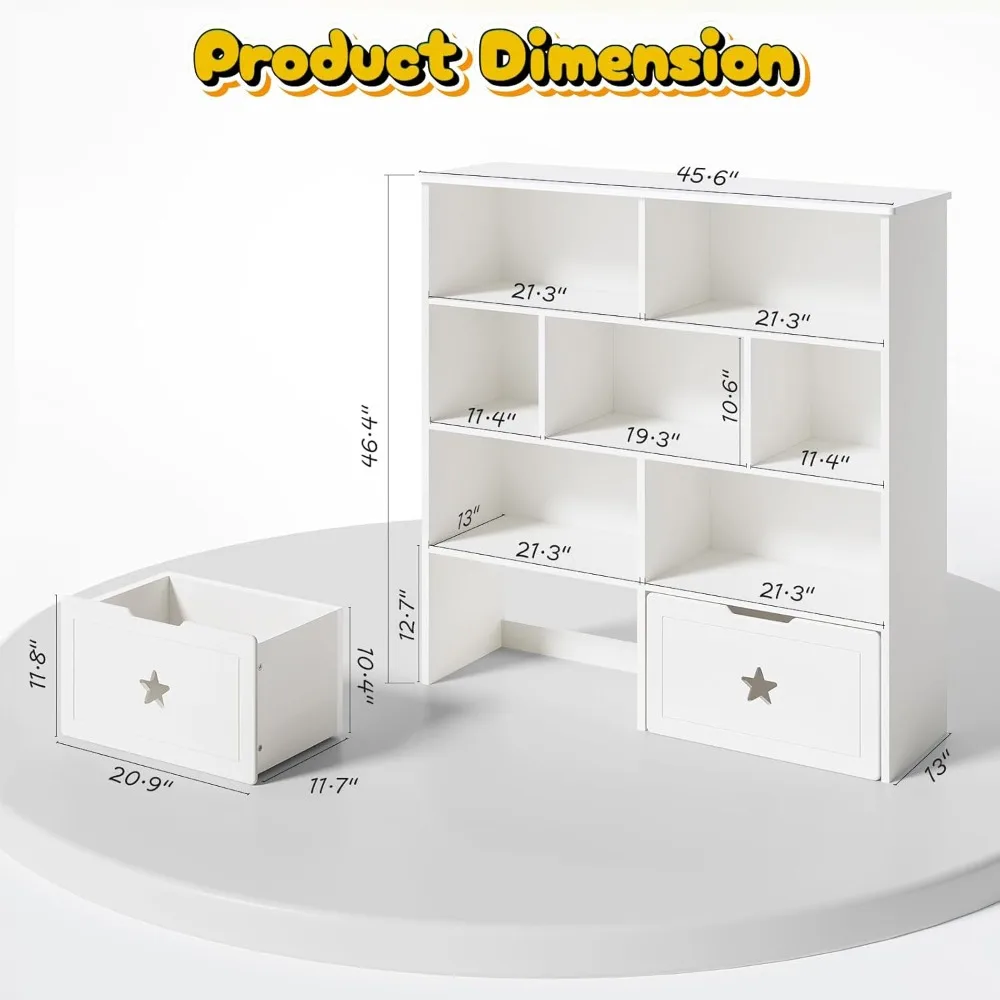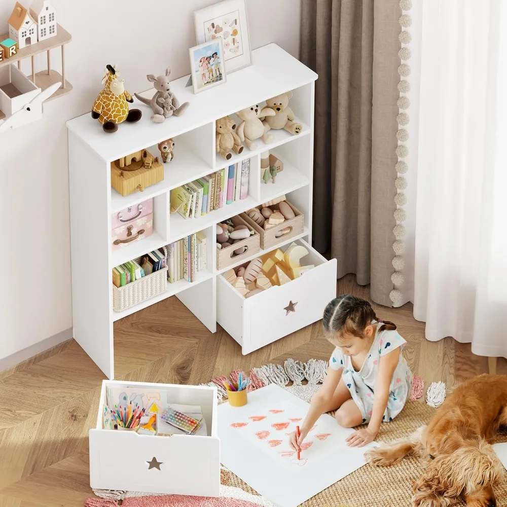 The open cubby design allows kids to easily see and access their favorite items, encouraging independence and tidy habits. The movable drawers provide additional hidden storage for smaller toys or clutter, keeping the space clean and calm.