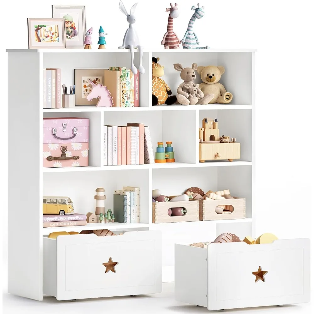 Keep your child’s room neat, organized, and stylish with this Large Kids Toy Storage Organizer, designed to store books, toys, and everyday essentials all in one place. Featuring 7 spacious storage cubbies and 2 movable drawers, it offers flexible organization for toys, books, games, and craft supplies.