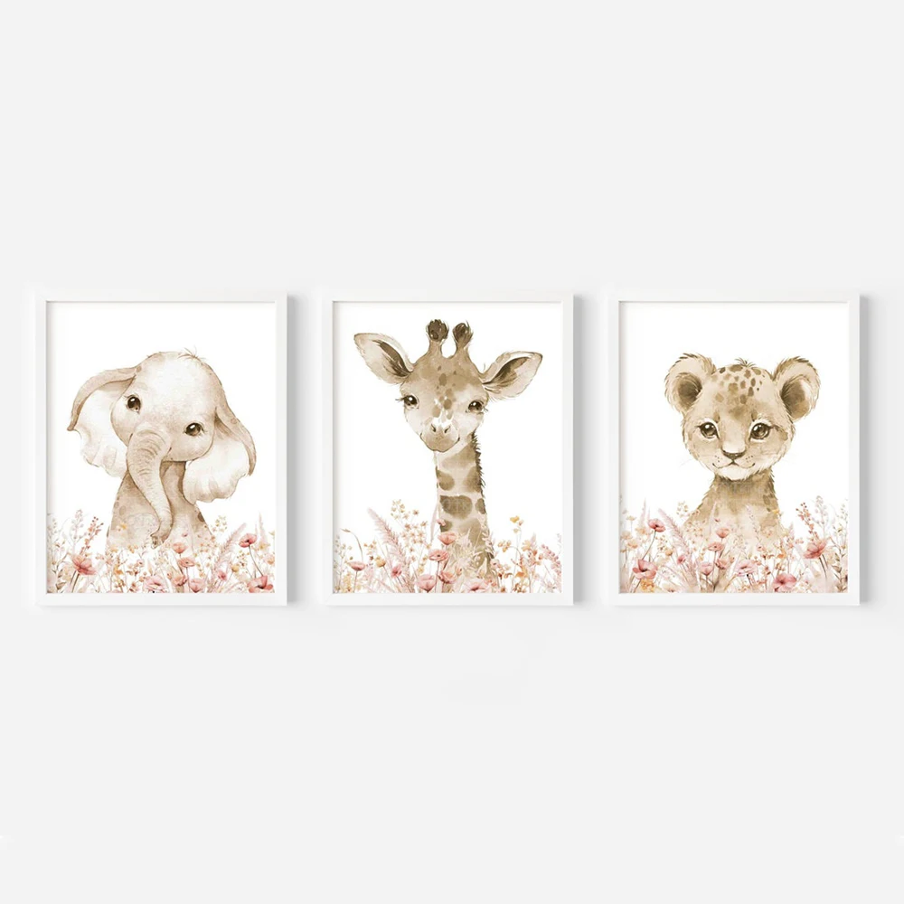 Add charm and whimsy to any space with this Nordic Animal Canvas Print, featuring adorable elephant, giraffe, and cat illustrations accented with pink flowers. Perfect for nurseries, kids’ rooms, or modern living rooms, this canvas brings warmth, color, and playful energy to walls.