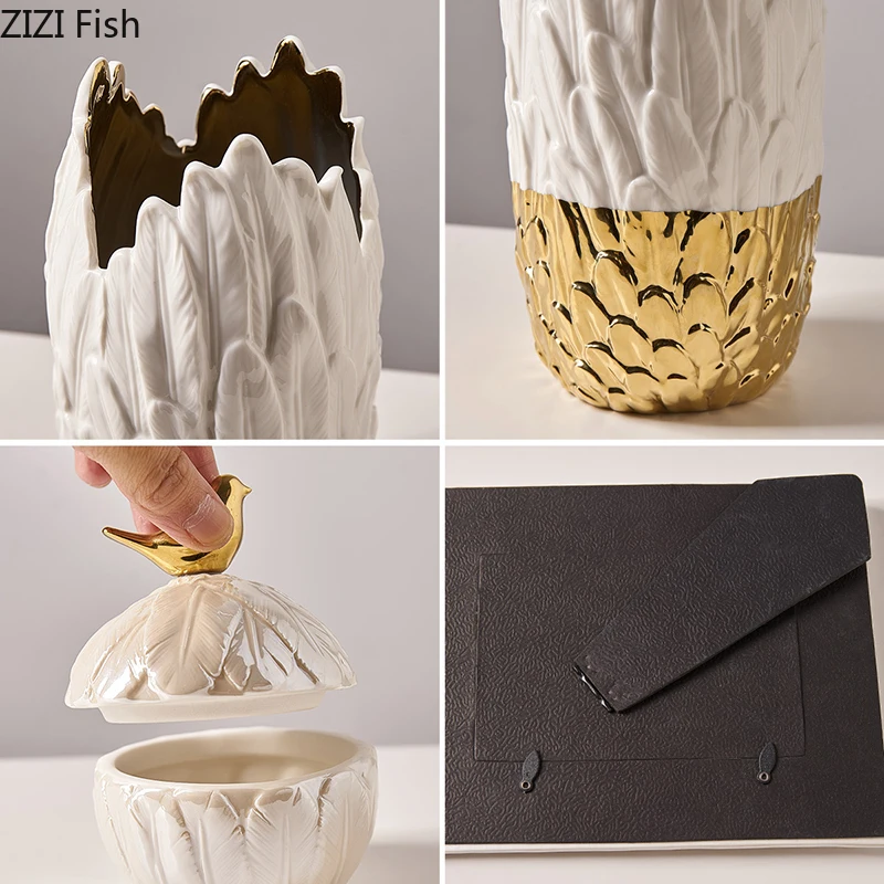 Ideal as a gift for friends, family, or housewarmings, this Nordic Ceramic Golden Bird Feather Jar combines beauty, functionality, and timeless design for everyday use.