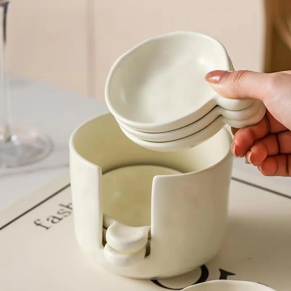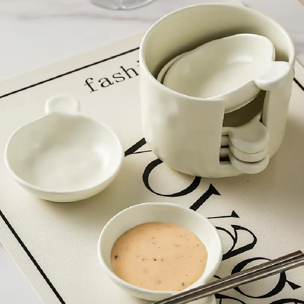 The Nordic Round Sauce Dish Set is a stylish and practical addition to any kitchen or dining table. Designed with a modern Nordic aesthetic, each dish features an irregular round shape that adds charm and uniqueness to your tableware collection. Perfect for serving sauces, dips, vinegars, condiments, or small side dishes, this set is ideal for hot pot meals, family dinners, or gatherings. Crafted from durable ceramic, the dishes are sturdy, lightweight, and easy to store.