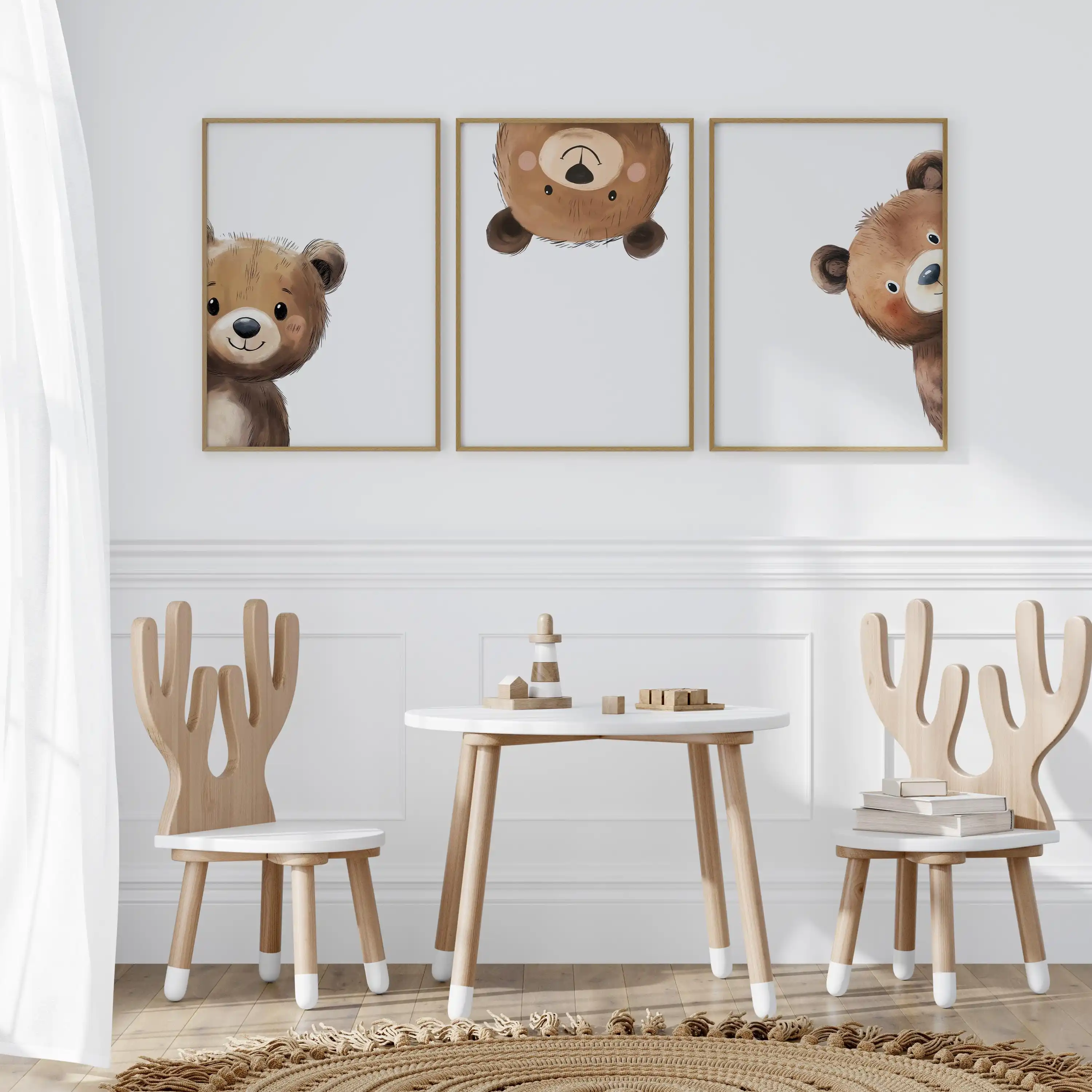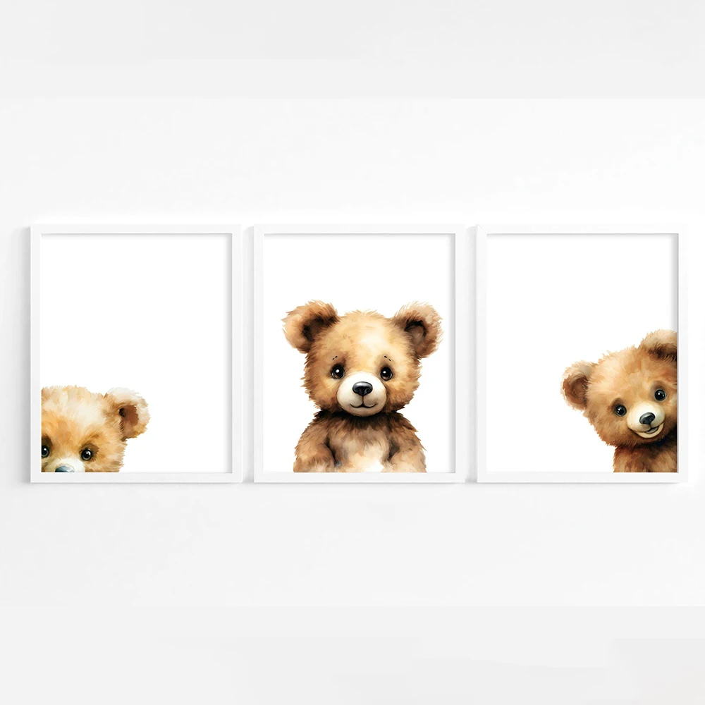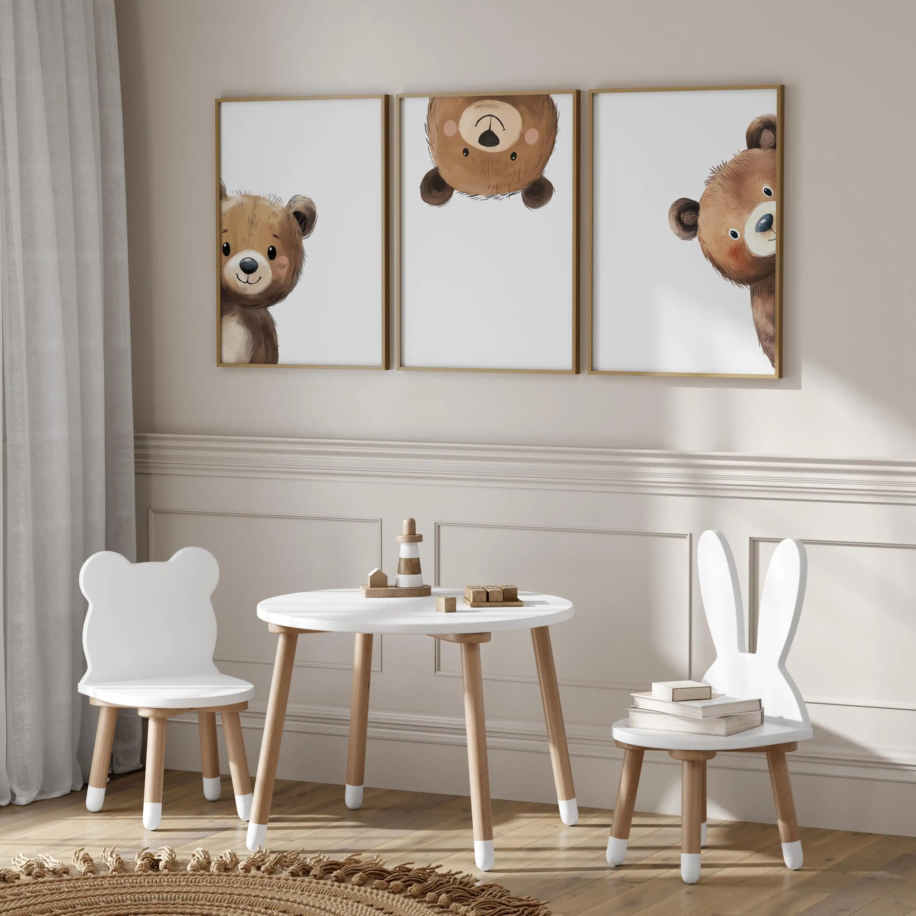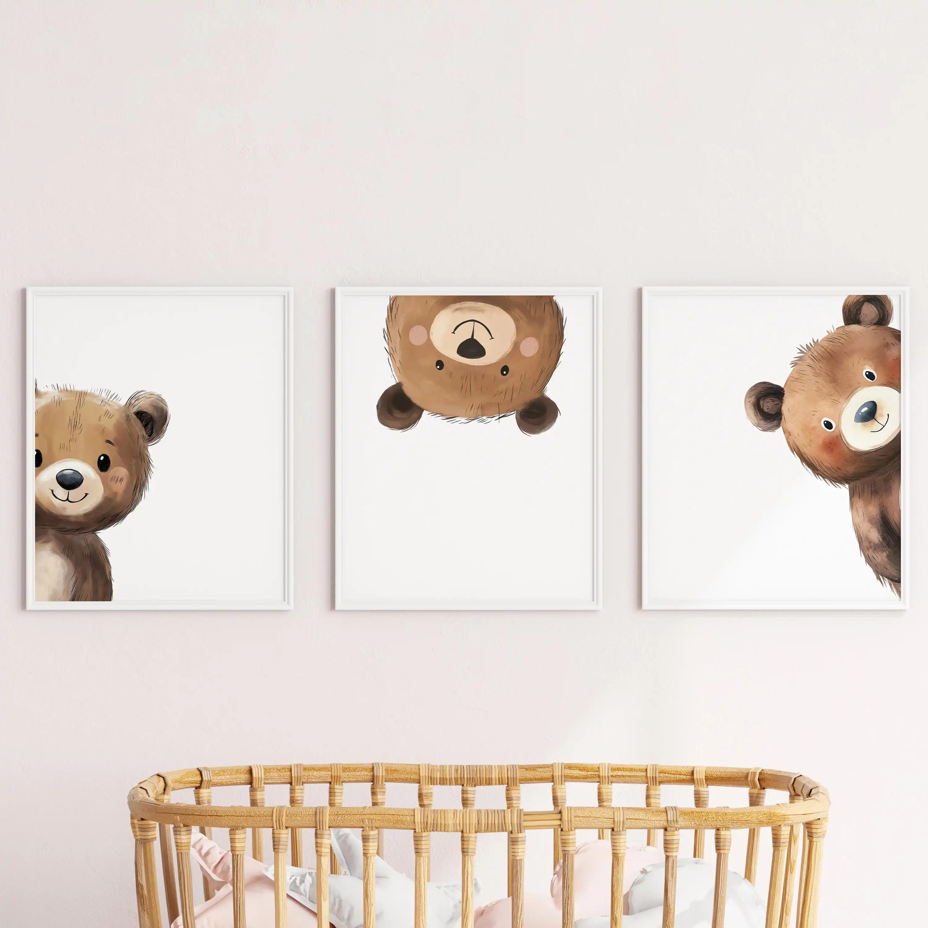 Add warmth and playful charm to your child’s space with this 3-Piece Bear Print Nursery Wall Art Set. Featuring adorable peekaboo-style bears, these prints bring a fun and friendly woodland theme to nurseries, kids’ rooms, and playrooms.