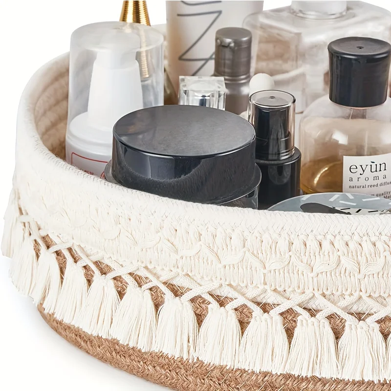 Organize your space in style with this Rustic Woven Storage Basket with Tassels, crafted from durable natural rope for a charming, earthy look. Featuring a soft beige color and decorative tassels, it adds a cozy, boho-inspired touch to any room while keeping your items neatly stored.